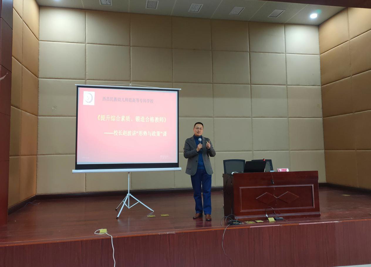 赵波指出西昌民族幼专是一所培养未来优秀教师的师范类高校,如何才能培养出一批批合格的优秀教师是学校面临的重大问题,对此学校上下高度重视。同时也希望同学们能够珍惜在校学习的宝贵时间,认真规划职业生涯,积极参与实践,树立终身从教的伟大理想,为国家和地区的教育事业贡献力量。