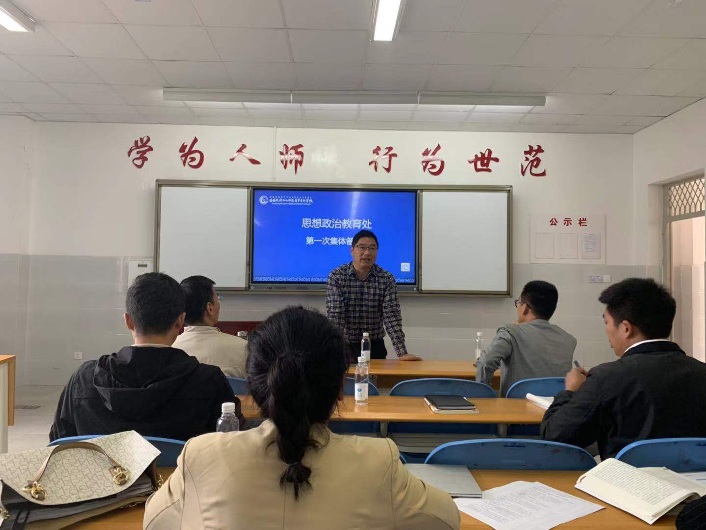 为了进一步提升新学期思想政治理论课的时效性、针对性。9月22日上午,思政处全体任课教师在第四教学楼1401教室,进行了新学期第一次集体备课和试讲活动。思政处副处长龚秀勇、教务处联络员禹云建、宣传统战部副部长张勇参加活动,活动由思政处联络员的嫫思雨主持。