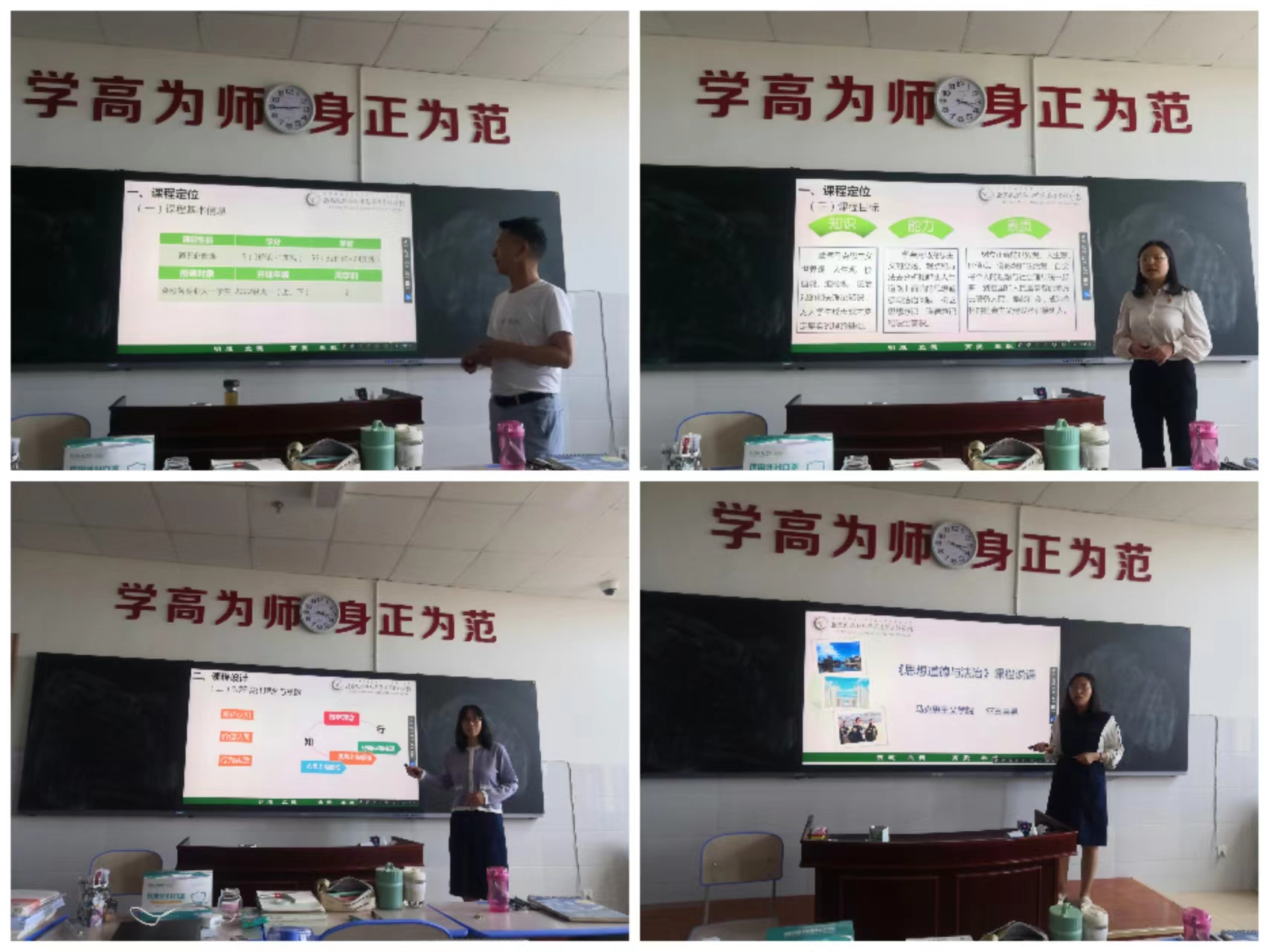 为进一步优化课堂教学设计,不断提升《思想道德与法治》任课教师的教育教学能力,充分做好迎接正式评估的准备。2023年4月25日下午,思想道德与法治教研室全体老师在第一教学楼1418教室开展了《思想道德与法治》课程说课活动。教研室主任尔古果果主持活动,李敏、张薇、石彦风和尔古果果四位老师依次进行了说课。