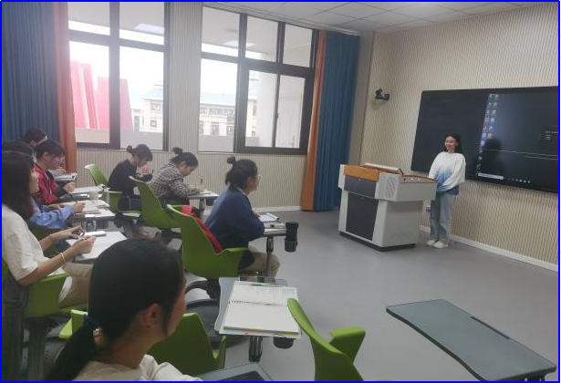 本次训练延续了学生小组合作探究的方法,班级学生分为四个试讲小组,1403、1503、1603、1613四个微格教室进行了试讲训练。本次训练,采取了学生依次上台进行课题讲课展示、组内学生互听互评、老师在总控室实时监控指导的方式开展。