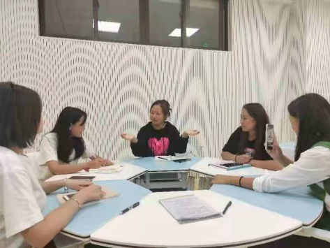 学习活动由集体授课和模拟实训两部分组成。在集体授课环节,徐克春老师就故事教学法的理念、应用等进行了详细的讲解、示范和答疑解惑。在模拟实训环节,学生以合作探究方式,开展交流研讨、微格故事试讲、师生互评等活动。这种小组合作讨论的学习方式,让大家对故事教学中语速语气表达方式、肢体动作、教姿教态、故事选取准备等有了更深的理解。