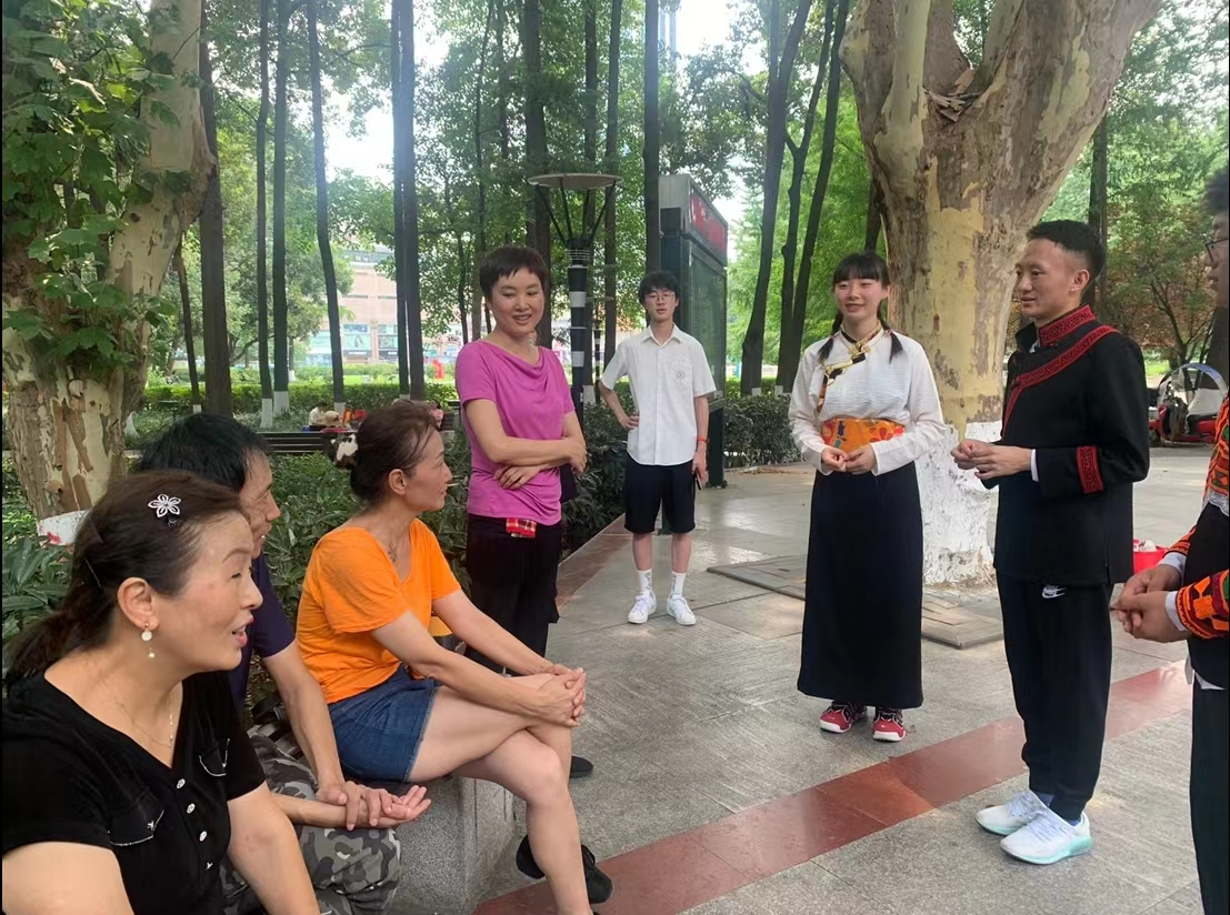 在活动过程中,宣讲队热情地邀请当地群众共跳凉山彝族达体舞、阿诗且;彝族同学还向大家讲解了彝语表达方式,交流了民族文化特色,宣讲现场一派其乐融融。