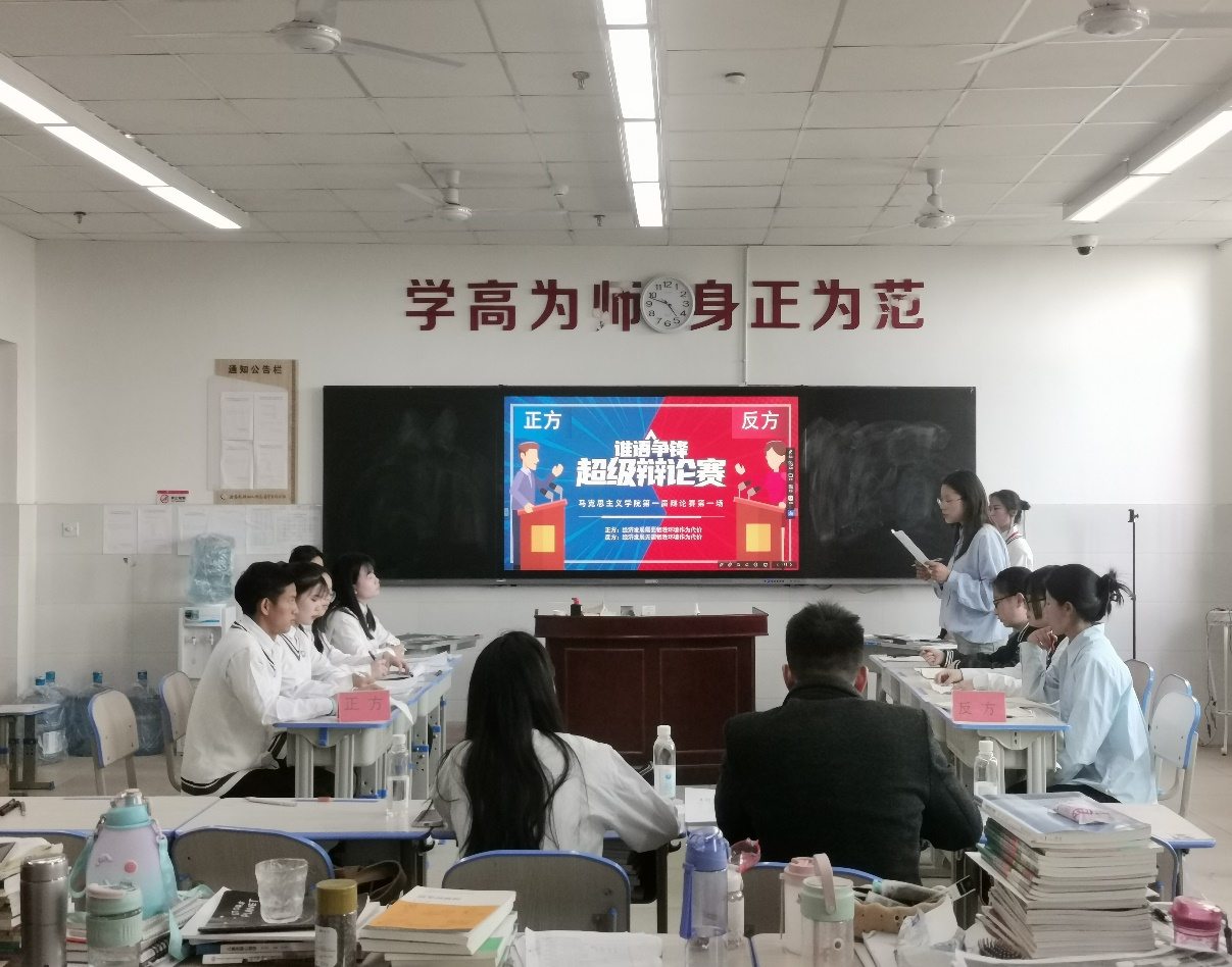 近日,马克思主义学院辩论赛在第一教学楼四楼举行,此次辩论赛吸引了师生们的广泛关注和积极参与。
