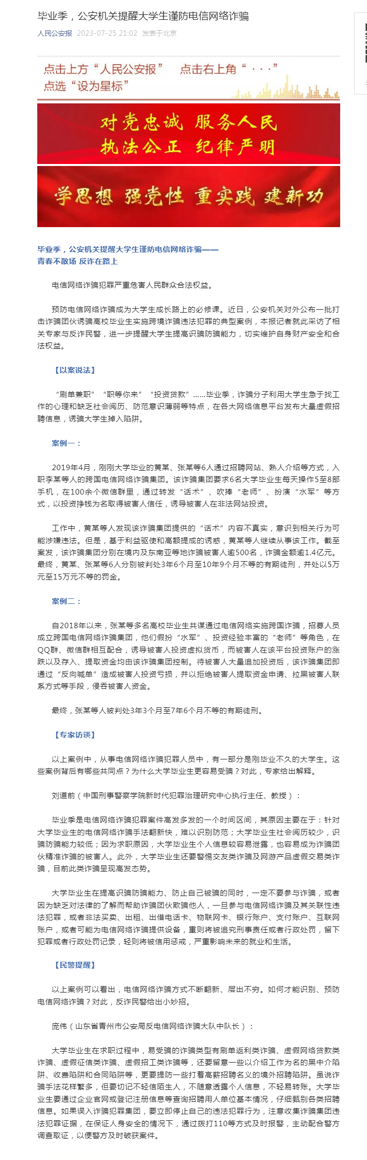毕业季,公安机关提醒大学生谨防电信网络诈骗