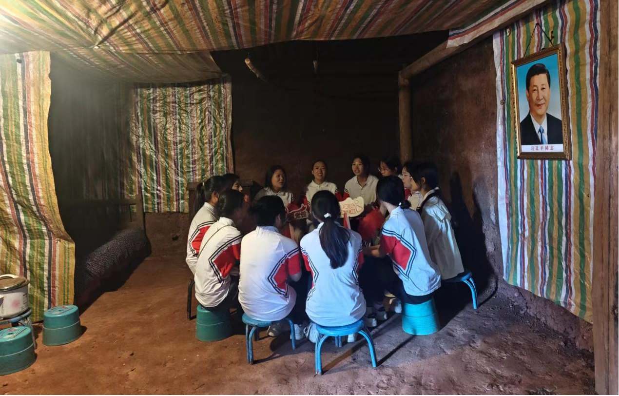 在三河村,团队成员沿着总书记的足迹来到了吉好也求家旧址,围坐在火塘边齐唱《歌唱祖国》;在新村,团队成员与村里儿童一起拿起画笔,共绘祖国的大好河山。