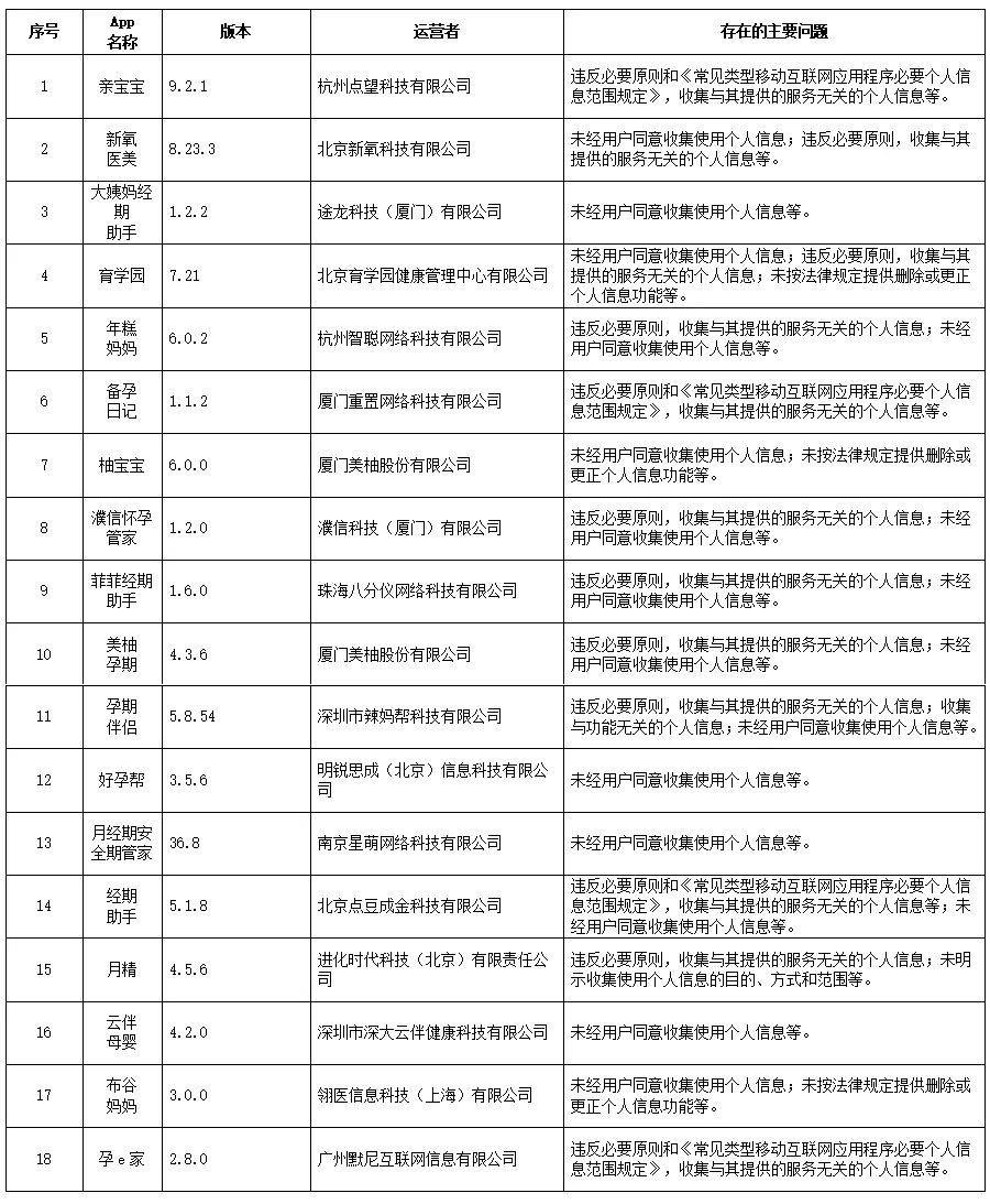 近期,针对人民群众反映强烈的App非法获取、超范围收集、过度索权等侵害个人信息的现象,国家互联网信息办公室依据《中华人民共和国网络安全法》《App违法违规收集使用个人信息行为认定方法》《常见类型移动互联网应用程序必要个人信息范围规定》等法律和有关规定,组织对运动健身、新闻资讯、网络直播、应用商店、女性健康等常见类型公众大量使用的部分App的个人信息收集使用情况进行了检测。现将有关情况通报如下: