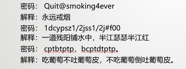 强密码由多种字符组成:大写字母和小写字母、数字、特殊符号。这使其难以预测,因此较难破解。