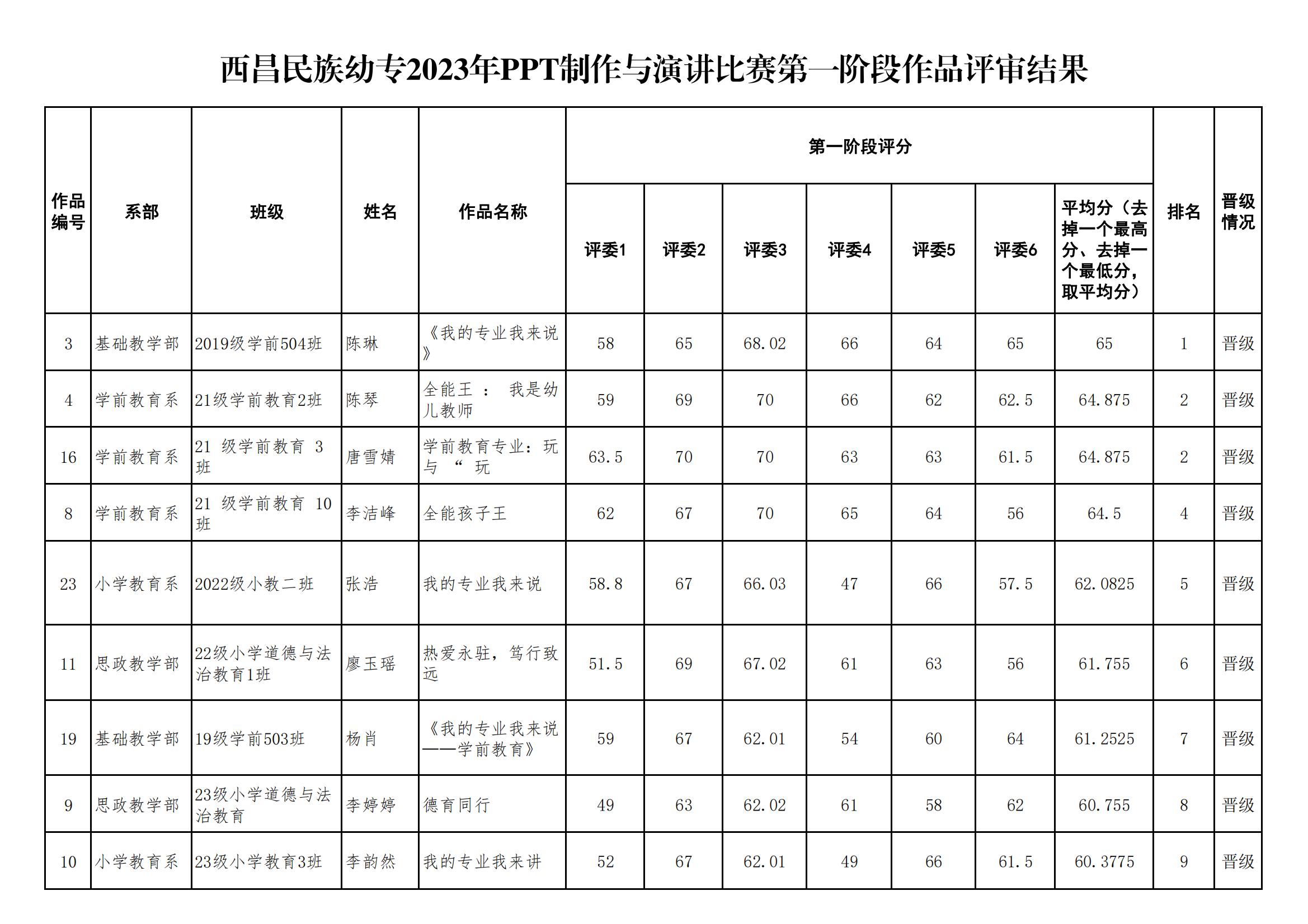 附件:西昌民族幼专2023年PPT制作与演讲比赛第一阶段作品评审结果