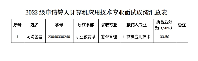 关于2023级申请转入计算机应用技术专业面试成绩的公示