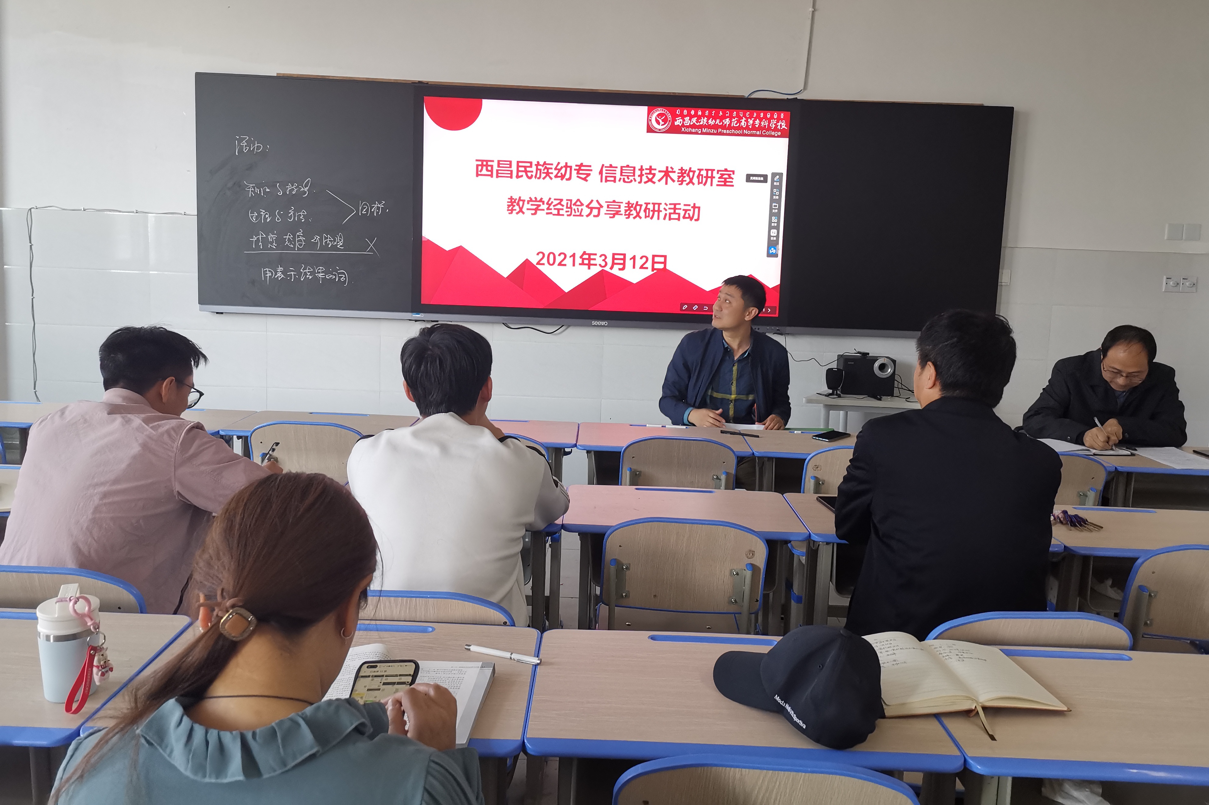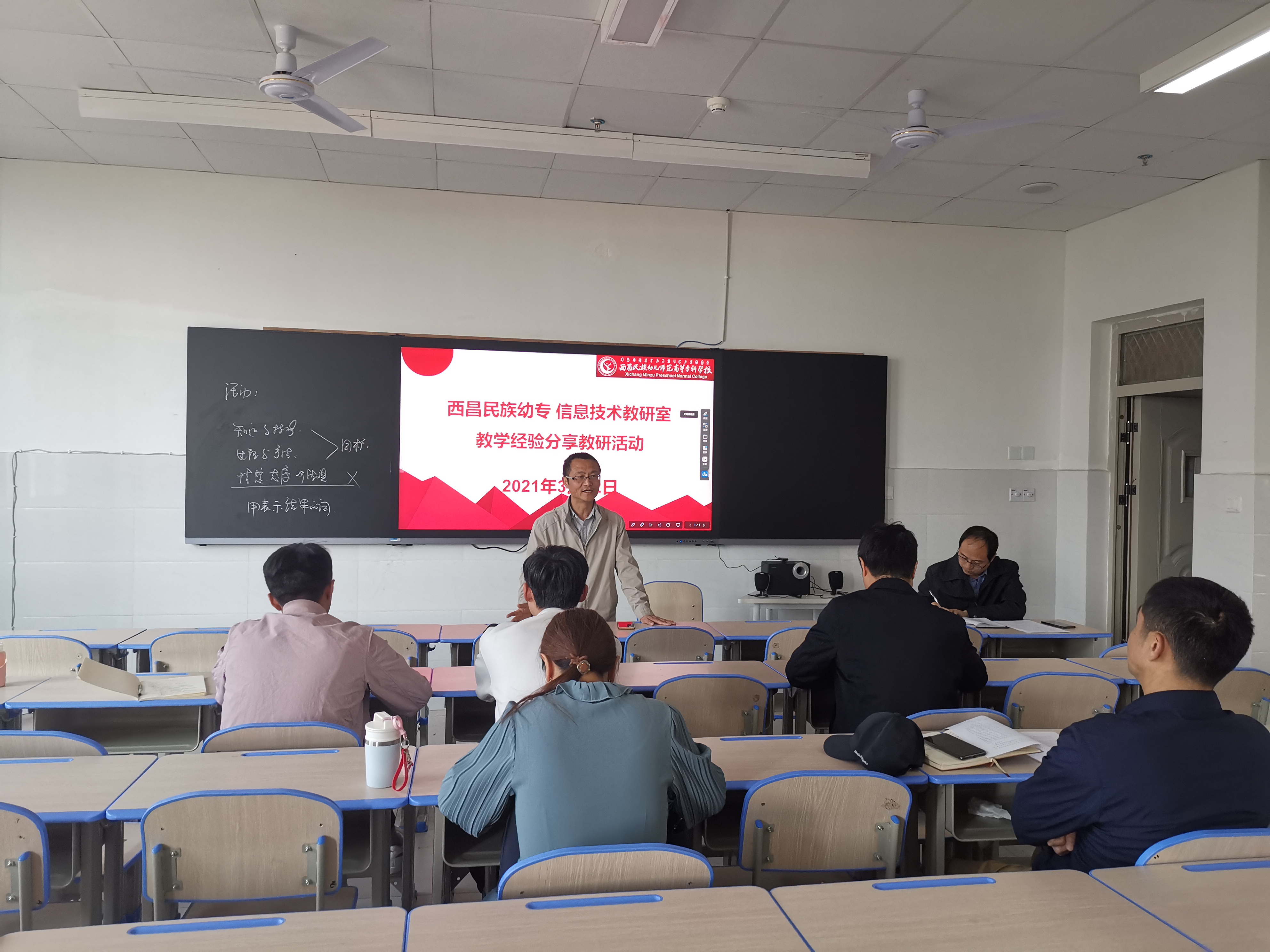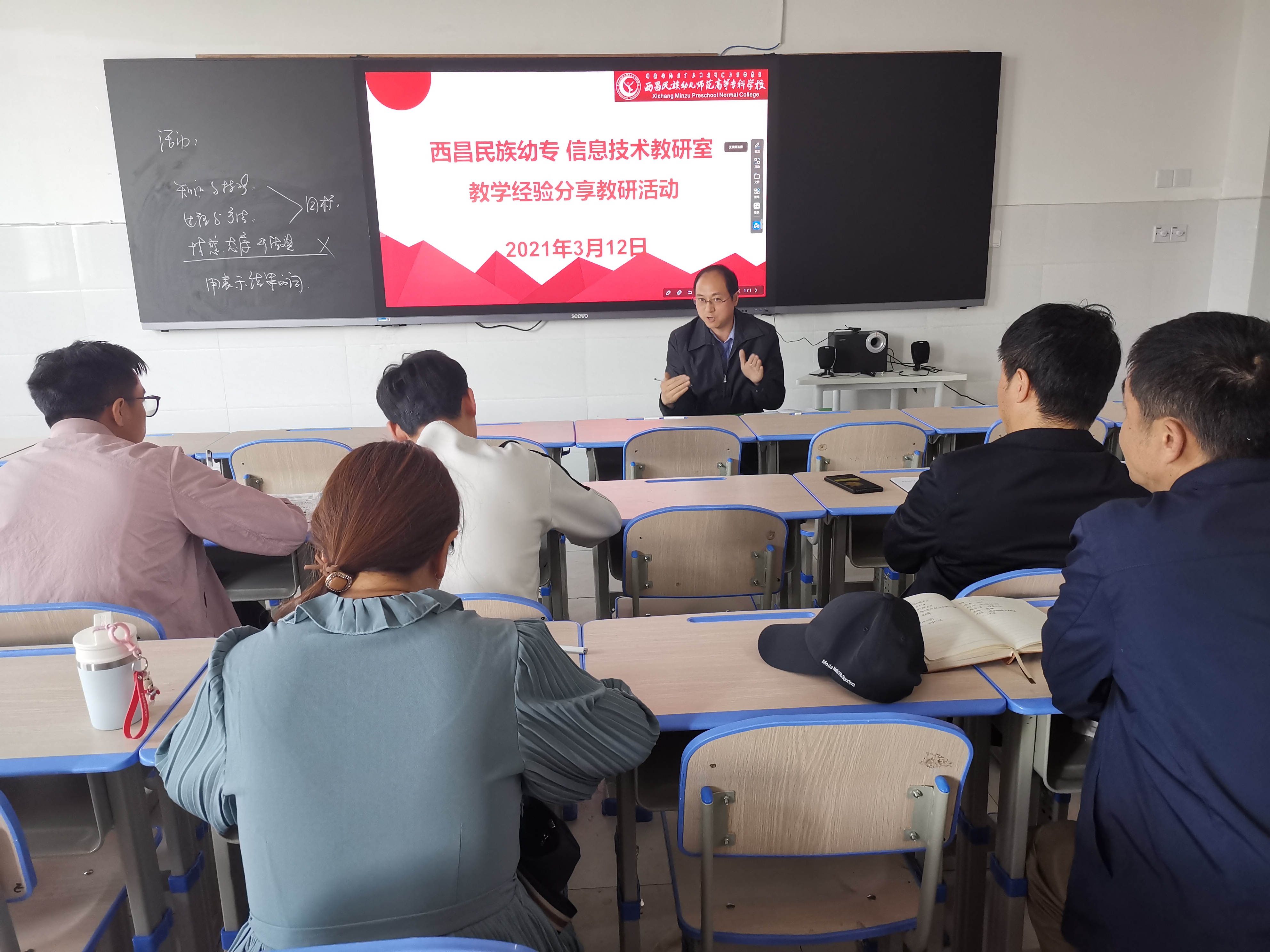 为进一步完善信息技术教学教研工作,提高青年教师教育教学质量,信息技术教研组教师于2021年3月12日在第一教学楼1305开展了新学期第一次教研活动。此次教研活动的主题是教学规范与教学交流,活动由郭钢老师主持。