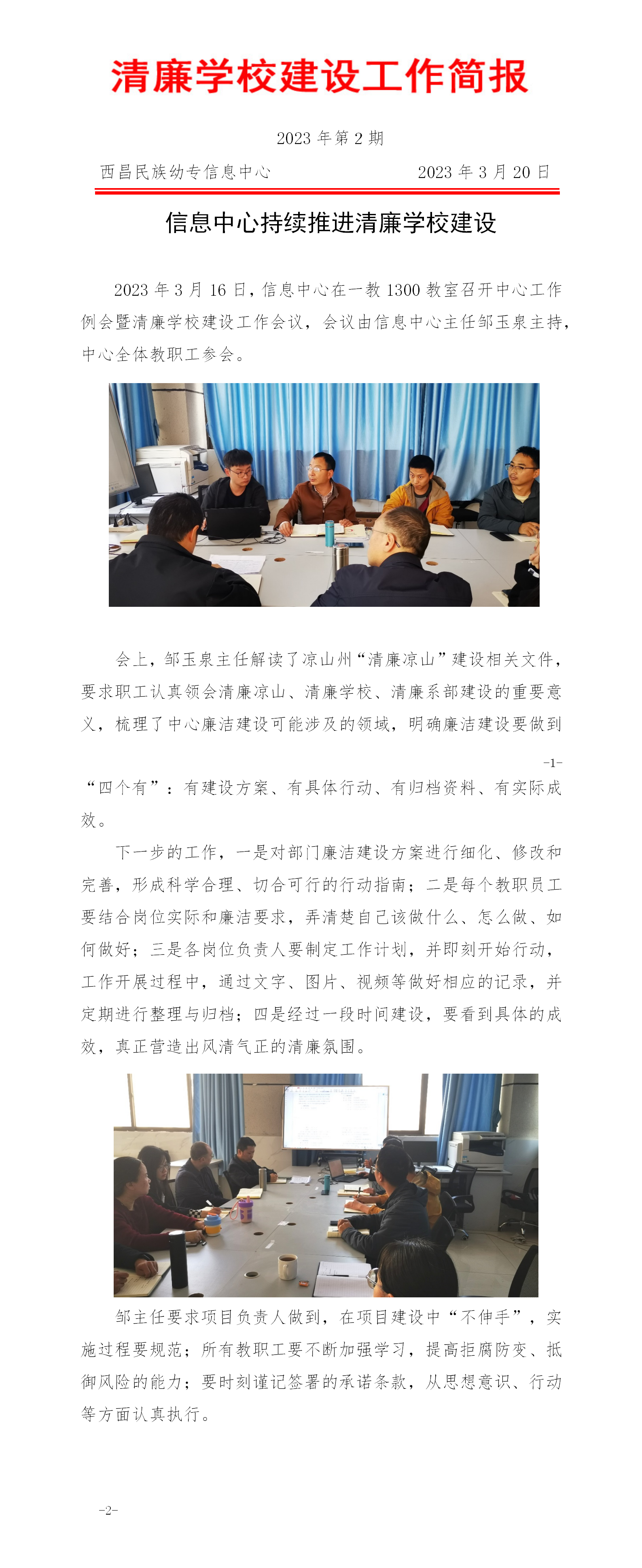 信息中心持续推进清廉学校建设