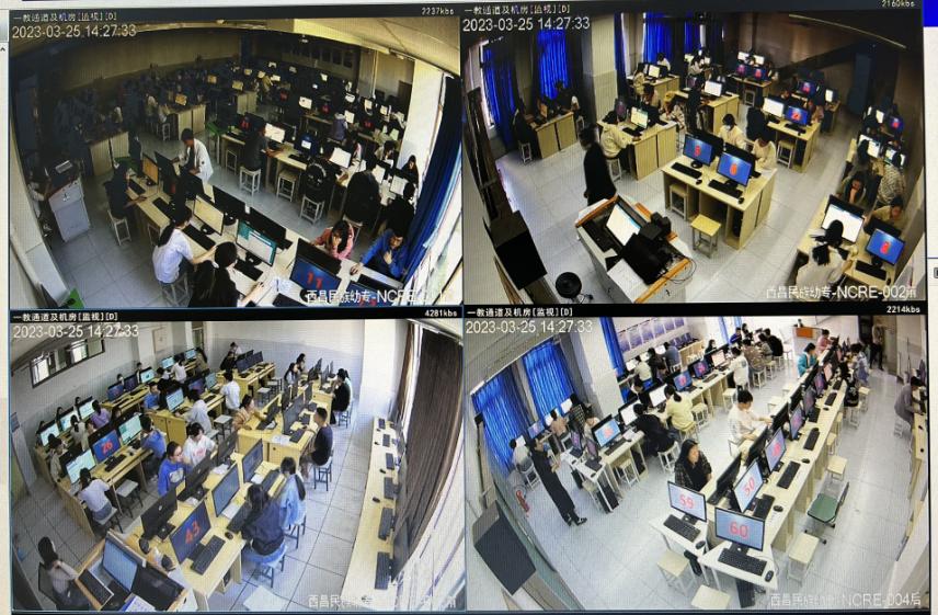 2023年3月25日,第68次全国计算机等级考试(NCRE)在我校如期举行,本次考试总报名995人次,其中一级518人次,二级477人次,考试分4个考场进行,每个考场4个批次。为保障考试的顺利进行,给学生提供优质的考试环境,信息中心在考前对考场监控系统设备进行了检测,确保考试期间远程监控系统设备处于正常开启使用、网络连通状态。