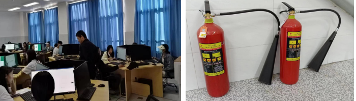 检查中发现的问题:个别机房消防器材摆放位置需要调整、四教学生机房学生机的网线需要作固定处理、机房门禁系统改造遗留问题仍未处置,李怀阳副主任要求实训室管理员要及时进行整改。