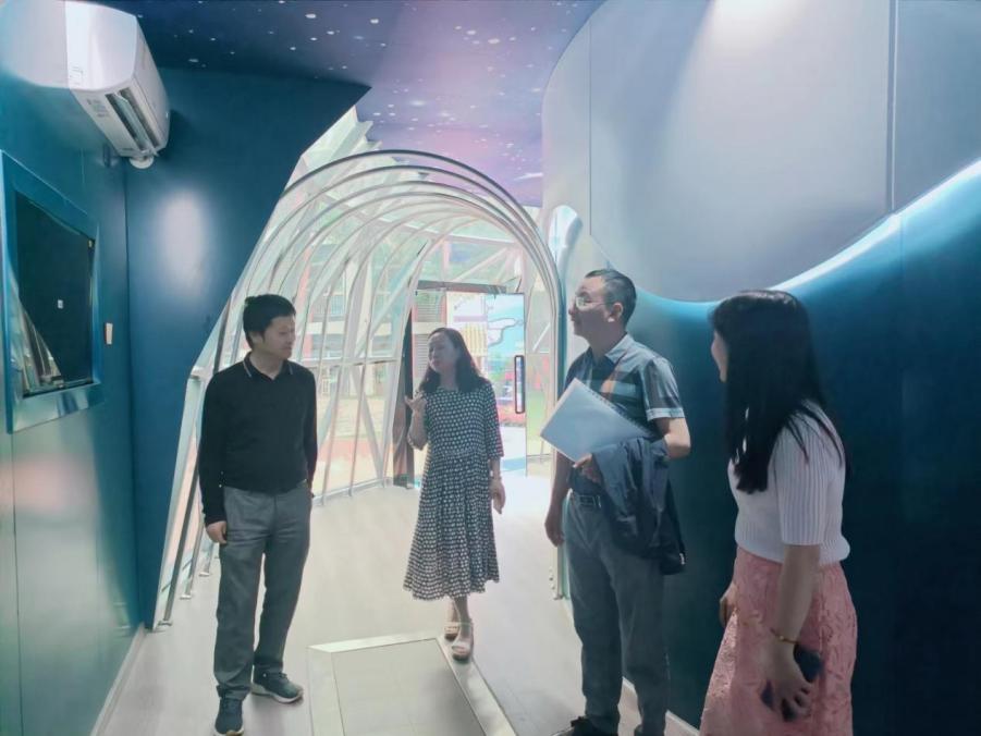 在王瑨副园长的带领下,调研组一行参观了园内科技馆、三味书屋、美工坊、多功能厅等信息化设施设备。对幼儿园高度重视信息化素养培养,创新意识从娃娃抓起的理念,有效利用各种育儿环节、充分将信息技术融入课堂的做法,邹玉泉一行表示了充分的肯定和赞扬。