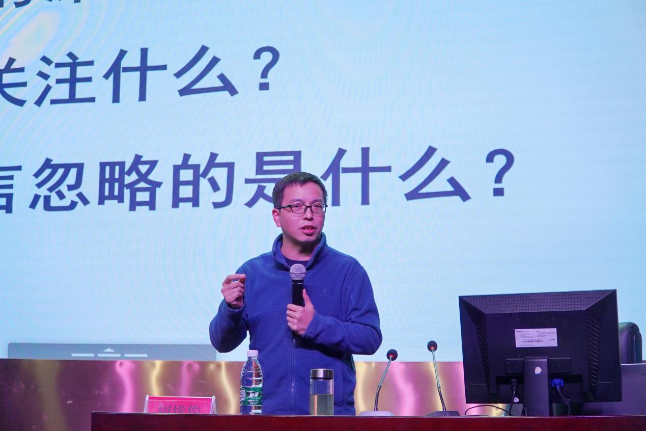 最后由四川师范大学计算机科学学院教育技术学副教授周俊雄带来《信息化教学的价值导向及高校教与学变革路径分析》讲座,周教授梳理了高校信息化教学的变革路径,从多媒体课堂到混合式课堂再到智慧课堂,是教与学的转变过程,更深层次提出教学实施中的基本逻辑——教学习评一体化,带给师生探索教学模式的新思考。
