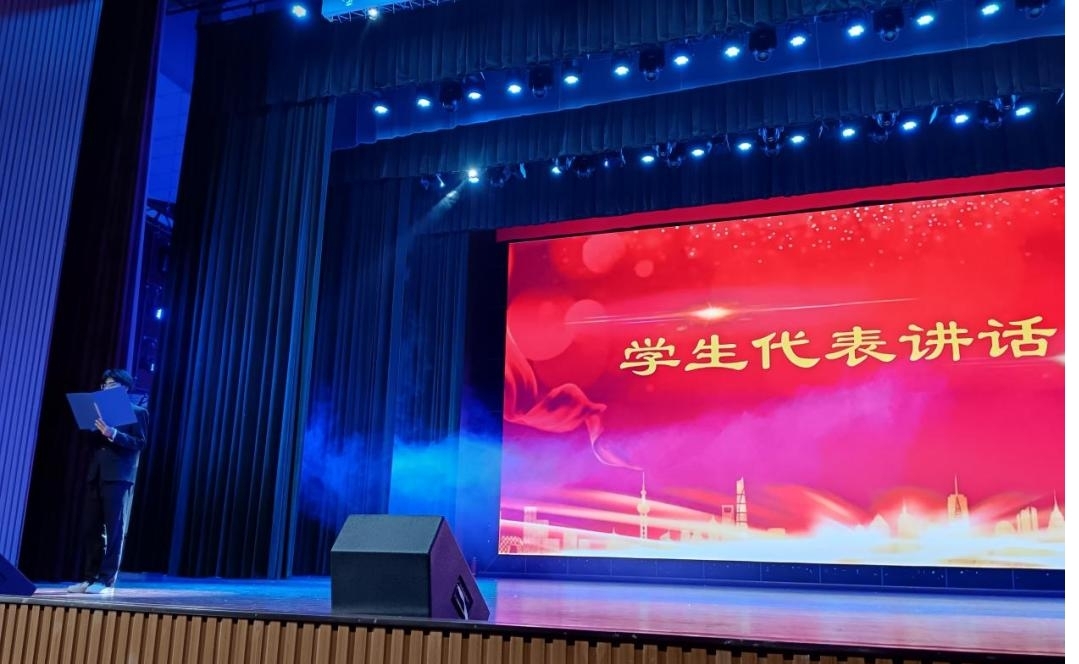 学生代表练勇毅分享了新生们在大学新起点的感受和期望,并寄语新生们在知识的海洋中畅游,寻找属于自己的兴趣领域;学会与人沟通、互相帮助,为将来的事业和人生打下坚实的基础;学会拥有自己独立的思考和判断力,而不是盲从和妥协,并用勤奋的汗水浇灌青春的田野。
