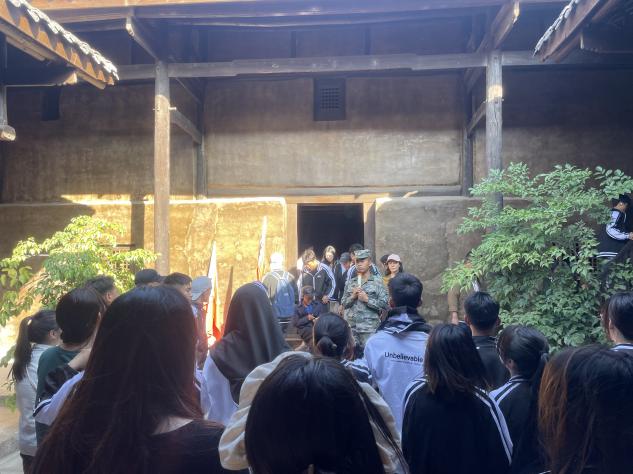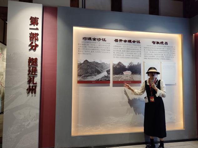 在红军长征礼州会议旧址。讲解员详细讲解了会议的背景、过程和意义。91岁高龄的边大爷,声情并茂讲述红军长征过礼州的历史故事,让老师和同学们深切的感受到在那个艰苦卓绝的年代里,红军战士们的艰辛与付出。对现在来之不易的幸福生活倍加珍惜。