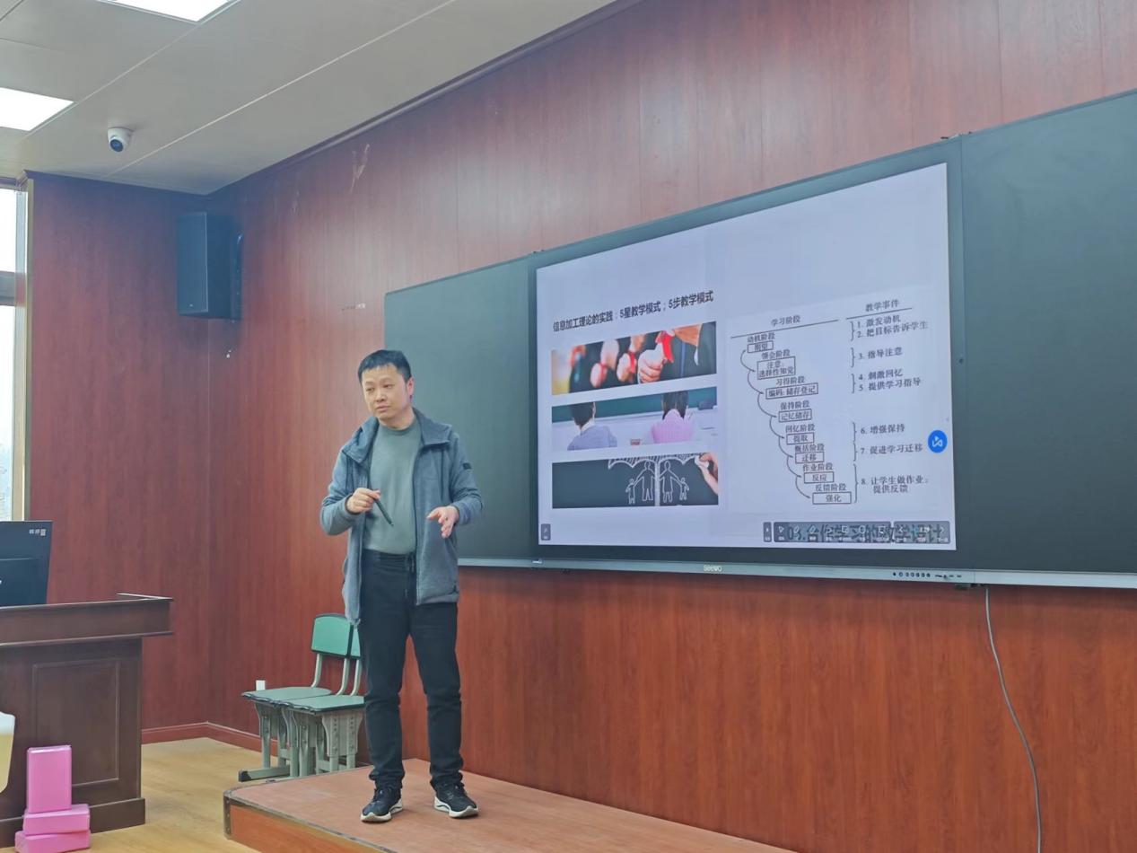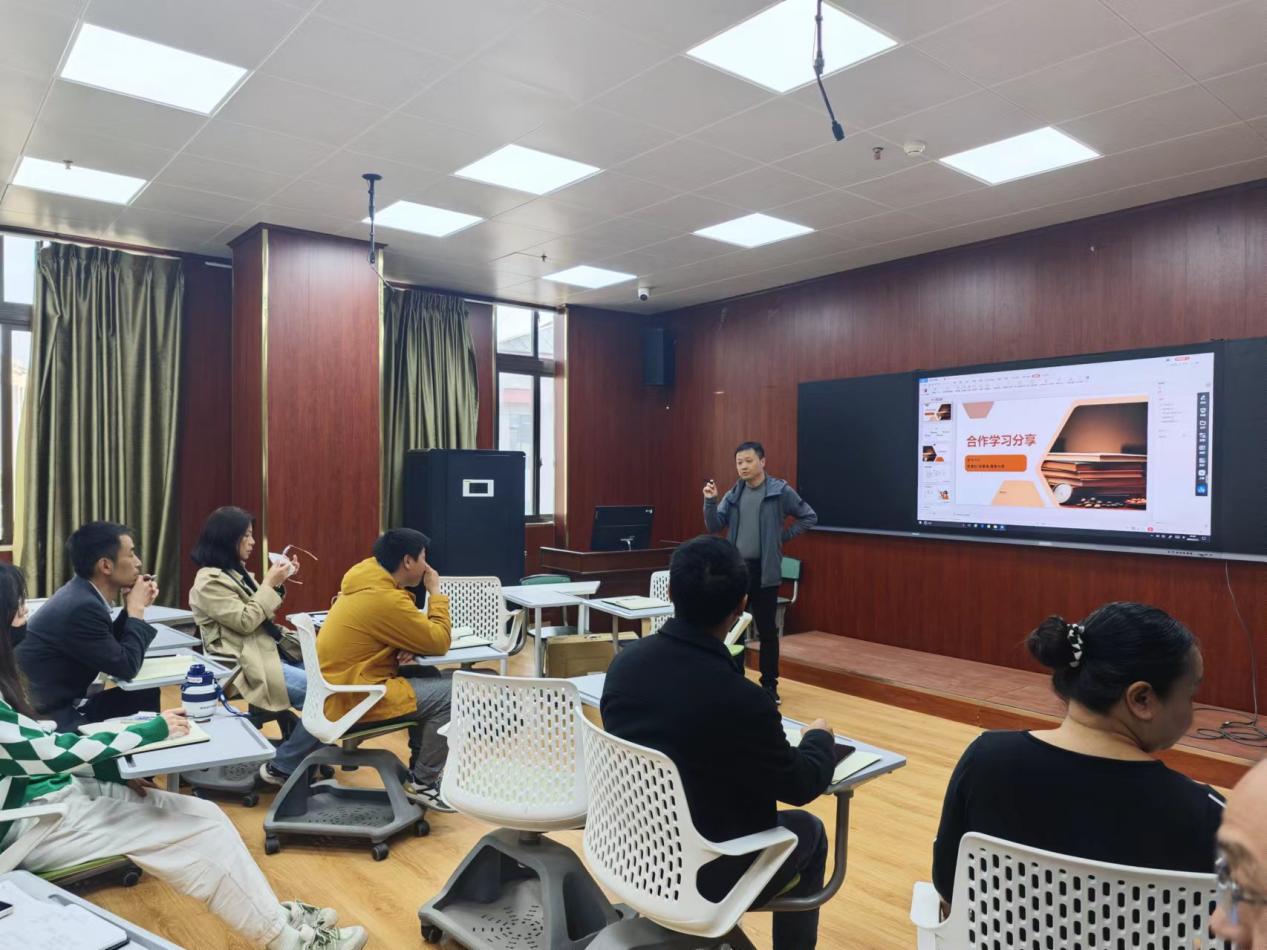 分管教学领导李怀阳副主任为教研室全体老师分享了“合作学习理念下的教学实践与探索”。李主任为老师们讲解了信息加工理论与5星教学模式,他强调通过小组合作、互动交流的方式,提高学生的自主学习能力、合作意识和创新思维。接下来通过两个小组互动游戏,老师们深入了解了合作学习在实际教学中的运用及其效果,在最后的讨论中,还探讨了如何结合学科特点,设计有效的合作学习活动,激发学生的学习兴趣和积极性。