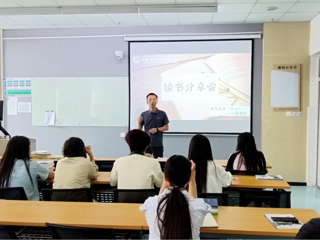 在五月末的炎炎夏日,我们的校园绿意盎然,乳白色的花朵随风摇曳,栀子花的香气在空气中弥漫,为这个季节增添了一抹清新的色彩。为丰富师生精神文化生活,提升阅读素养,信息技术系(中心)于5月28日下午,在一教1304、1307、1406教室同步举行了师生读书分享会。