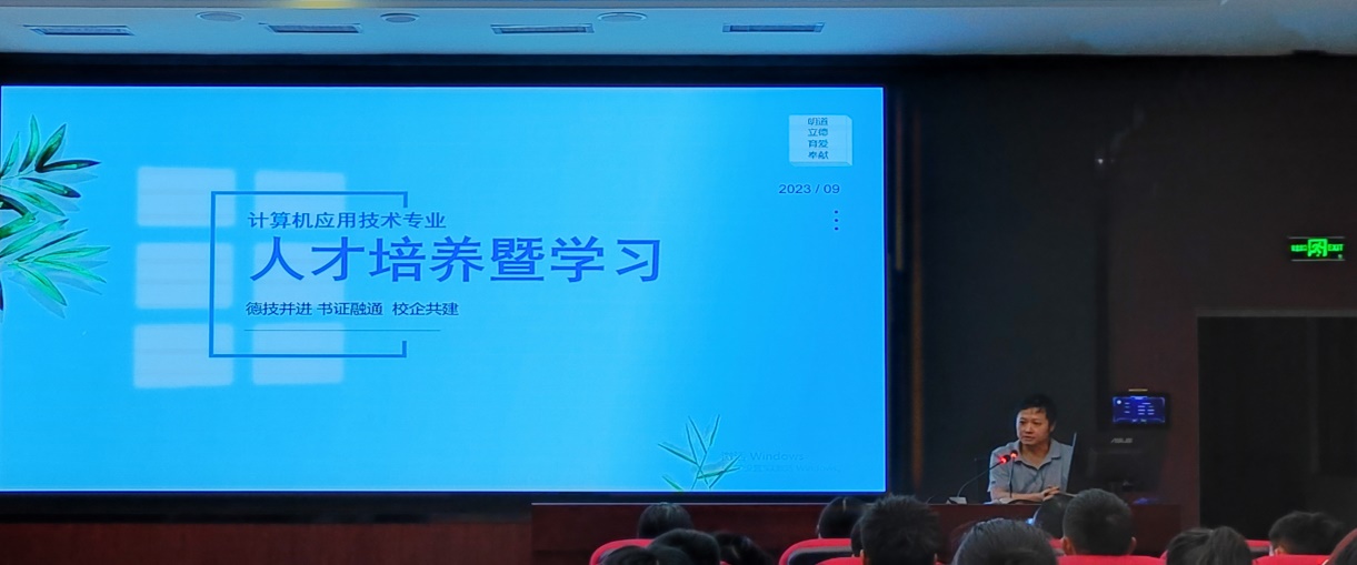 副主任李怀阳就人才培养方案向同学们做了专业介绍,明确培养目标是德技并进的技术技能型人才,同时对专业的相关知识和课程体系进行了介绍。告诫同学们在大学不要荒废时光,树立个人发展目标,持之以恒,努力成就一个更好的自己。