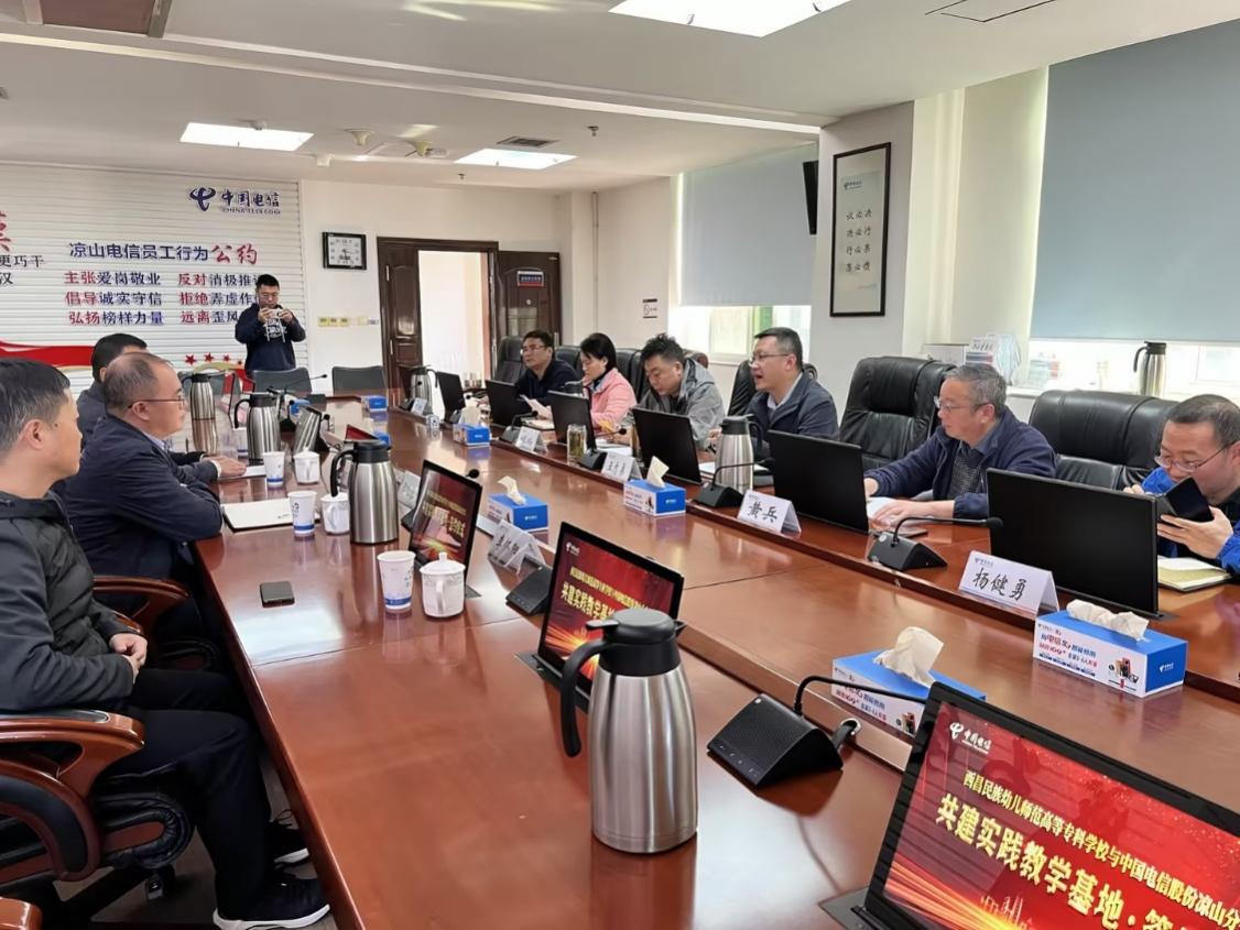 王志勇总经理对西昌民族幼专一行的到来表示热烈欢迎,他介绍了公司的发展历程、企业定位、企业文化、业务板块以及人才需求等方面的情况,他指出,凉山电信的企业精神是“苦干实干更巧干,红色凉山竞好汉”,凉山电信从最初的半部电台发展到今天的综合信息服务提供商,红色文化是凉山电信的基因。此次校企合作目的是共谋发展、合作共赢,他表态,此项工作凉山电信一定要做好,也一定有能力做好,后期各有关部门要落实好合作的具体措施。他表示公司将全力支持西昌民族幼专的教育事业发展,为学校提供更多实践机会和资源支持,以培养更多适应社会需求、具备实践能力的优秀人才。最后,王总再次对西昌民族幼专一行的到来表示热烈欢迎,并期待双方未来在校企合作中取得更加丰硕的成果,共同推动教育事业和行业发展。