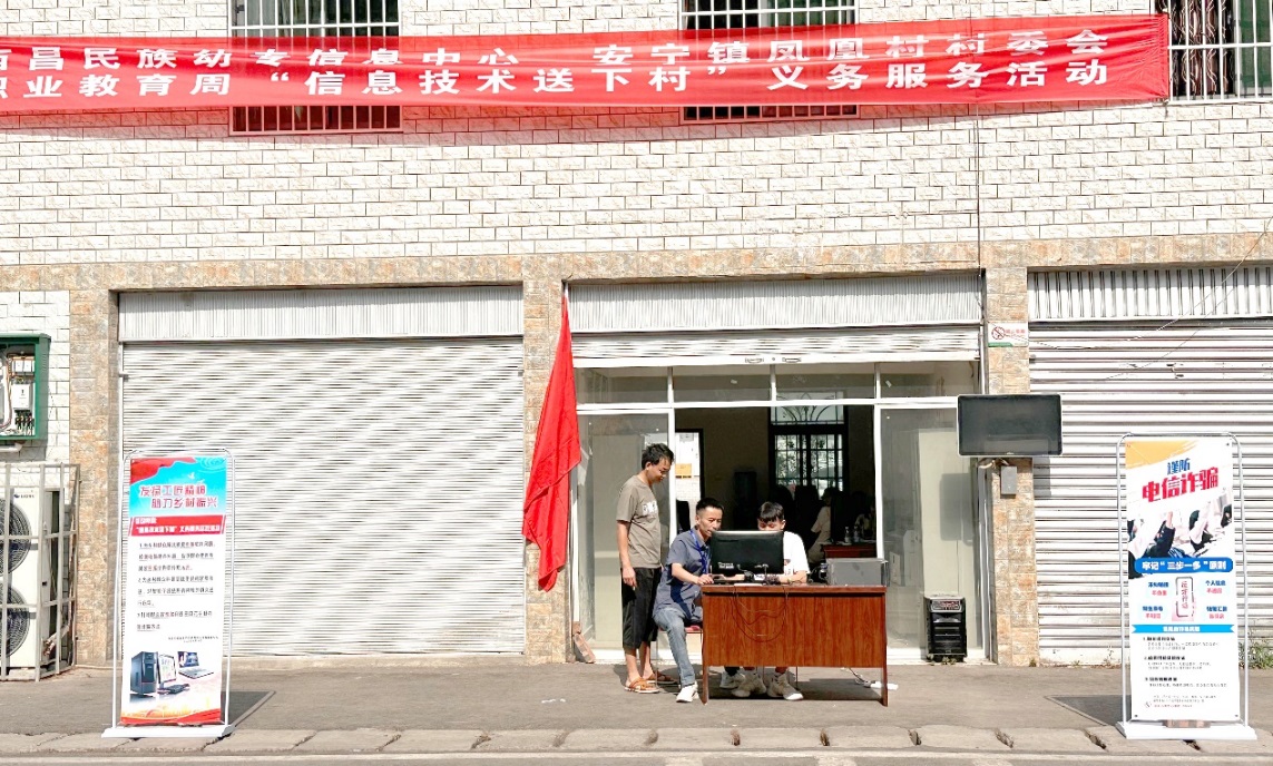 为缩小城乡发展差距,推动科技进一步服务于民,从而助力乡村振兴,西昌民族幼专信息技术系按照省教育厅2023年成渝地区双城经济圈职业教育活动周要求及学校安排部署,组织师生于5月18日下午,到西昌市安宁镇凤凰村村委会开展了以“发扬工匠精神·助力乡村振兴”为主题的“信息技术送下村”义务服务实践活动。信息技术系指导老师杨正文、杨文斌及计算机应用技术专业六名学生志愿者参加了此次活动。
