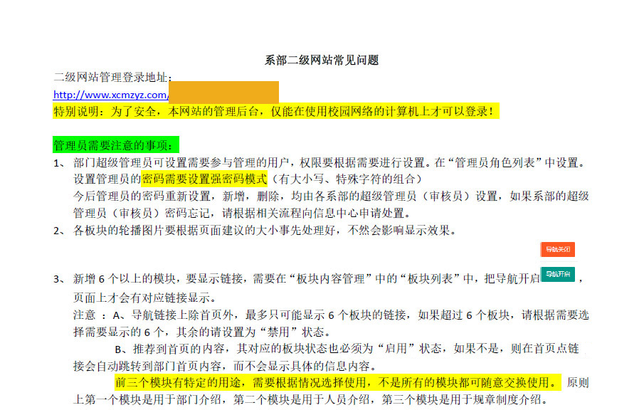系部二级网站常见问题及解答