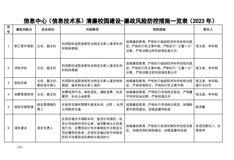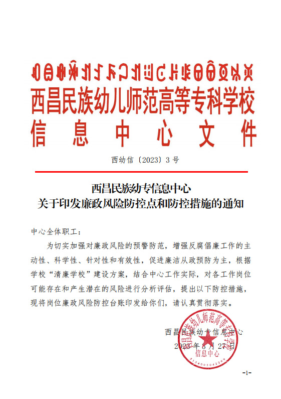 《西昌民族幼专信息中心关于印发廉政风险防控点和防控措施的通知》(西幼信〔2023〕3 号)