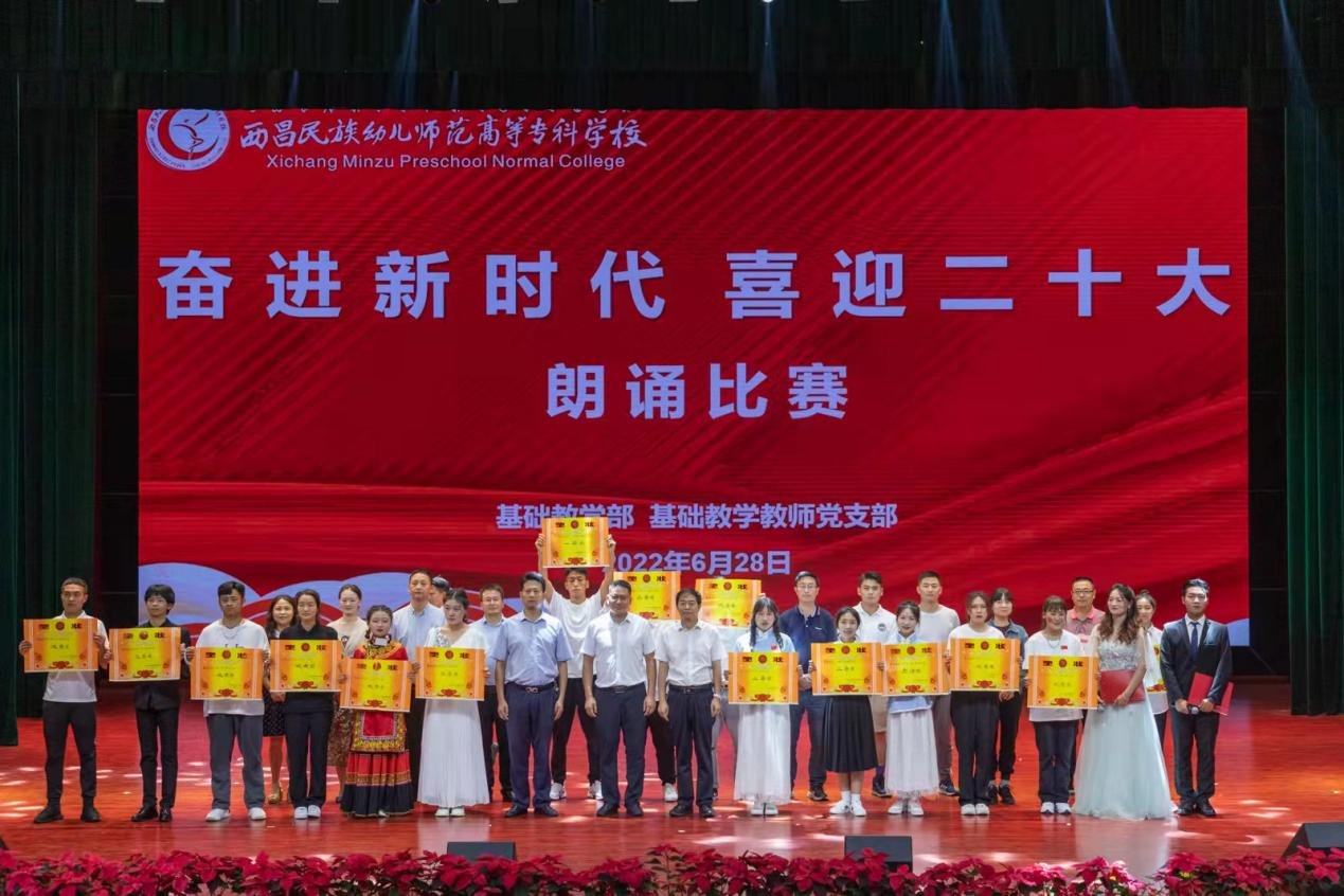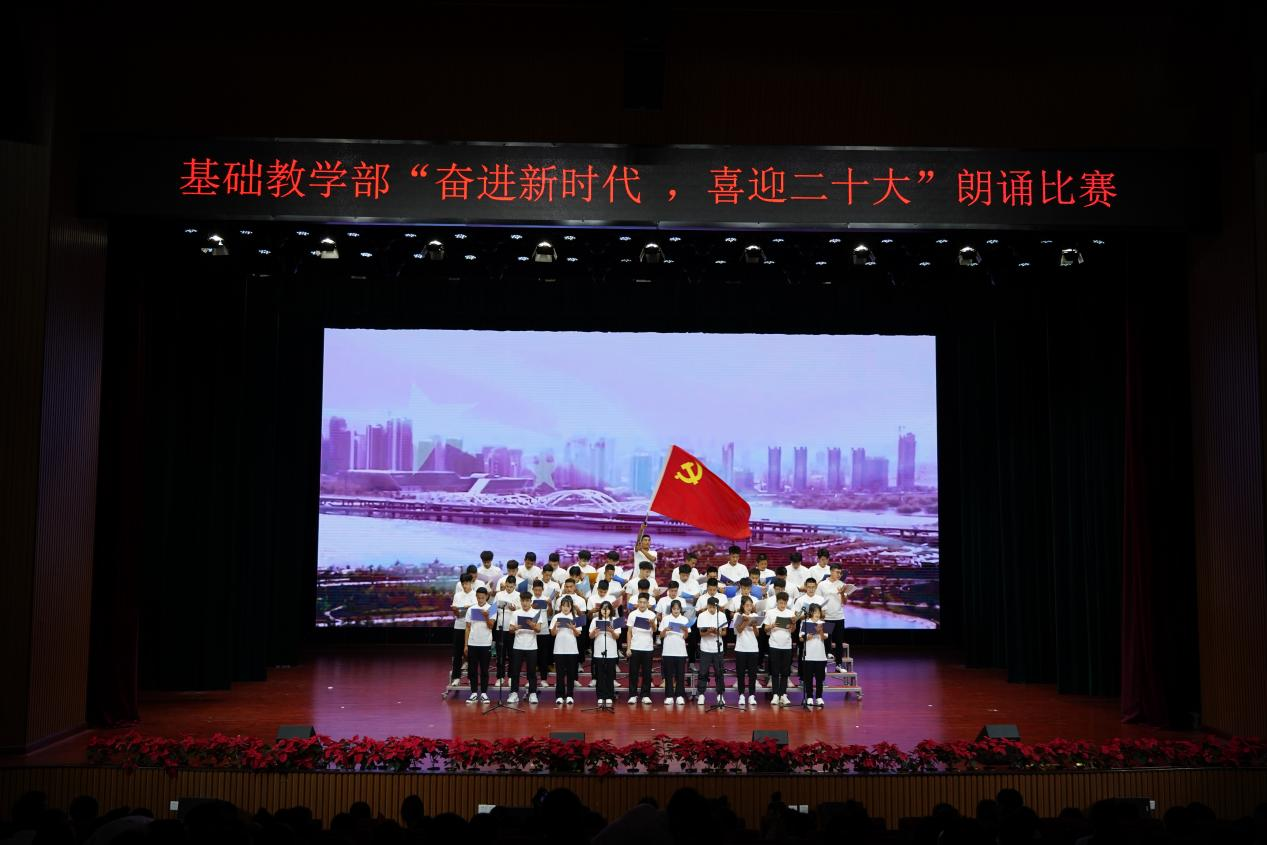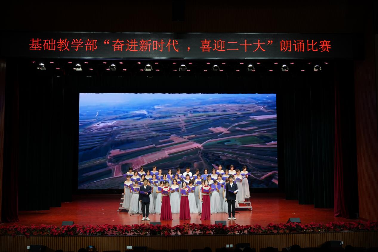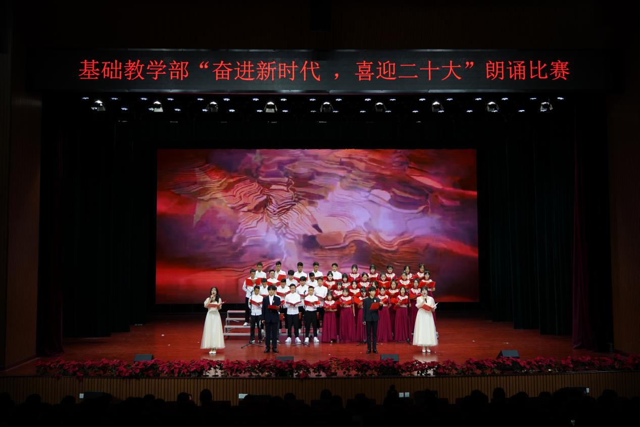 6月28日下午,基础教学部、基础教学部教师党支部以“奋进新时代,喜迎党的二十大”为主题的朗诵比赛在雏鹰剧院举行。学校党委委员、纪委书记沙德康,基础教学部主任高波,联合党总支书记王显华以及基础教学部师生观看此次比赛。