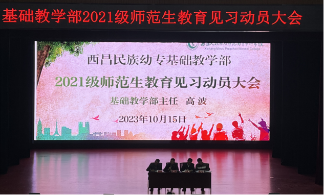 为了教育见习实践活动的顺利进行,教育见习开展前夕,基础教学部于10月15日在雏鹰剧院召开了2021级教育见习动员暨培训会,为学生开展见习做足准备。