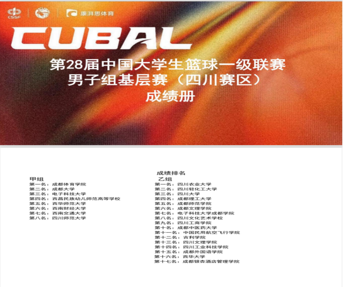 近日,第28届 CUBAL(中国大学生篮球联赛)一级联赛四川赛区甲组赛事落下帷幕,我校男篮最终斩获第四名。这一成绩不仅刷新了我校在该项篮球赛事的历史纪录,更创下该赛区甲组专科院校参赛历史最佳成绩