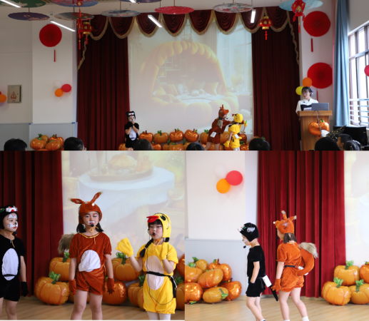 将绘本阅读与幼儿教育五大领域结合起来,为幼儿教育多领域的保教活动提供素材,比如以绘本剧的形式再现经典绘本故事,无疑是一种极为有益的尝试。西昌市花涧桃源幼儿园依托《婴幼儿绘本阅读》精品课程,校园合作、理实结合,开展绘本语言教育、社会教育等多领域活动,深受幼儿欢迎。在宽敞明亮的表演大厅,朱园长和幼儿们一起表演了精心创编的绘本剧《南瓜汤》。堆满金灿灿南瓜的舞台展现了活灵活现的故事场景,搭配曲风欢快的背景音乐声,小朋友们穿着精心制作的服装、拿着生动形象的表演道具,将幼儿的认知、情感和行为完美的融为一体,绘声绘色的呈现了一则关于友情和分工合作的经典绘本故事。