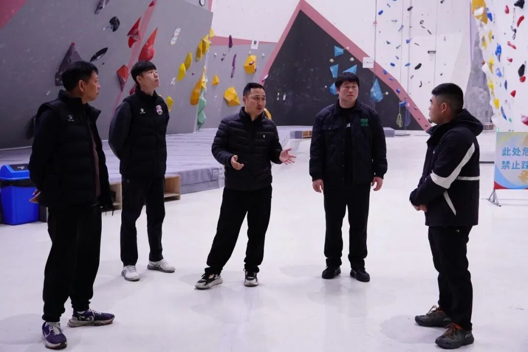 团队还实地参观了眉山国际攀岩中心。讲解员田宝峰系统介绍了其在攀岩课程体系、赛事组织、青少年培训与教练员培养等方面的成熟经验。双方就体育、应急专业学生实习、攀岩项目校内推广及师资协同培养等后续合作进行了沟通交流。