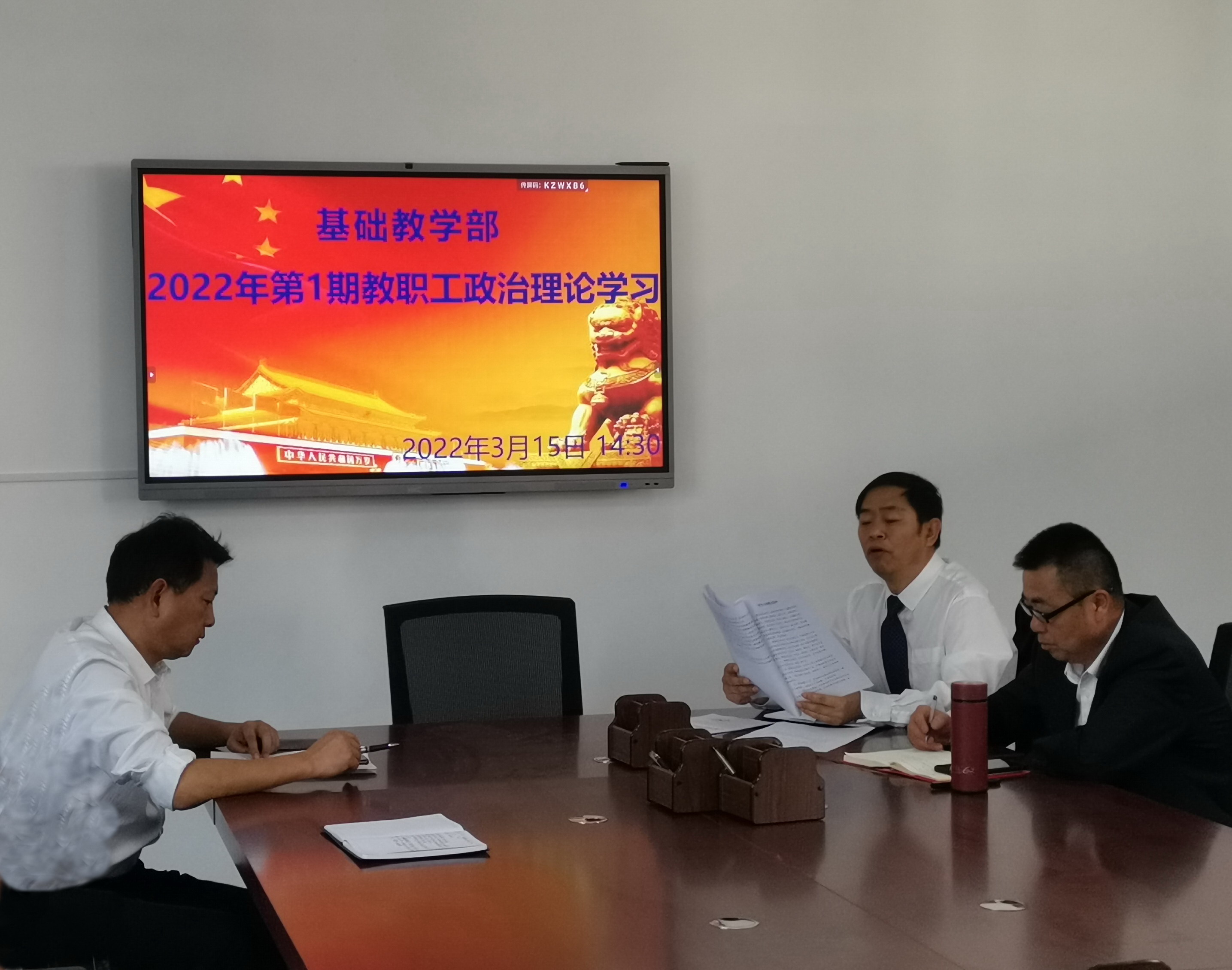 根据学校党委工作部署,结合时事政治和工作实际,基础教学部组织系部全体教职工于20223151430在第二教学楼2307会议室进行了2022年第1期政治理论学习,会议由高波主任主持。