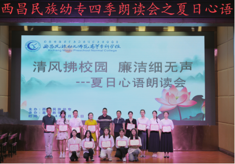 6月25日下午,学校以清风拂校园,润物细无声”为主题的读书会暨夏日心语活动在学术报告B厅举行。党委副书记、工会主席王玉萍,党委委员、纪委书记沙德康,基础教学部主任高波、党总支书记王显华、副主任徐云以及部分师生代表观看此次朗读会