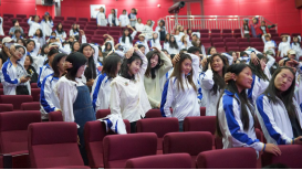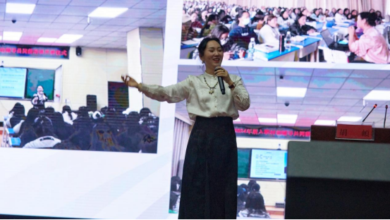 最后,胡頔老师与现场学生深入互动,点燃现场氛围,邀请学生现场领读“我骄傲——我是一名幼儿教师”,提升学生的职业认同感与作为一名幼儿教师的自豪感,并邀请同学们大胆展示自我,现场同学情绪激动,主动参与唱歌跳舞互动,讲座现场热闹友爱。