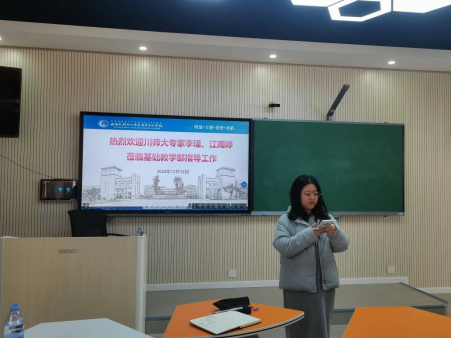 2024年12月10日,四川师范大学服装与设计艺术学院党委副书记李瑾、工作室成员江雨婷一行到我校开展辅导员工作室建设经验交流活动,帮助建设“红烛”辅导员工作室。基础教学部学工负责人李剑锋,系部教师及“红烛”工作室全体成员参加活动。