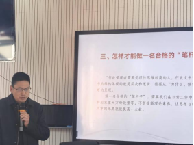 沙德康结合学校实际,聚焦实战实用,对如何写好公文,从素材搜集、立意主旨确定、结构组织等方面进行了深入细致地讲解,对文字的逻辑结构、语句表达、固定搭配进行了针对性讲解,对公文格式的规范性进行了强调。