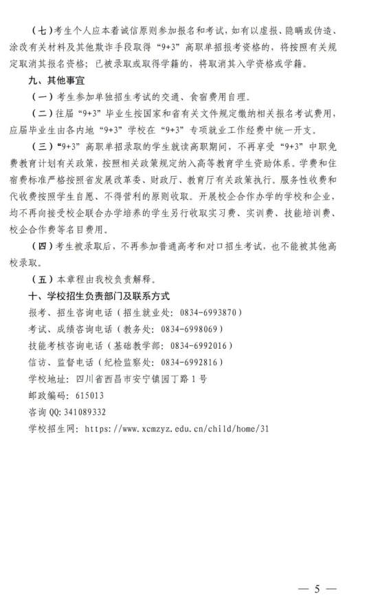 西昌民族幼儿师范高等专科学校2023年(五年制)招生章程