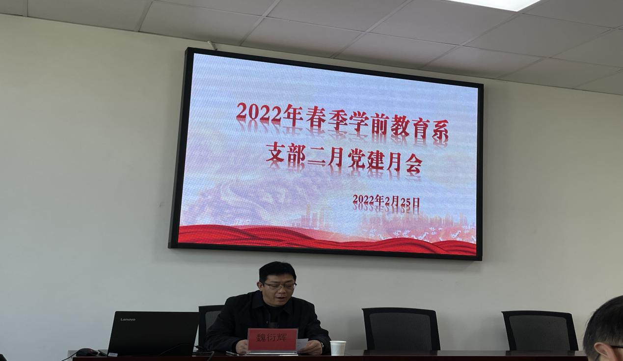 为加强支部组织建设,充分发挥党员先锋模范作用和支部战斗堡垒作用,学前教育系支部于2022年2月25日中午1:00,在第四教学楼4308会议室召开2月党建月会。学前教育系支部全体党员参会,会议由支部组织委员苗超渊主持。