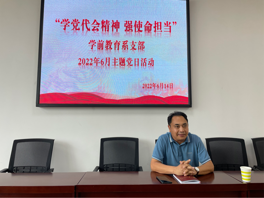2022年6月14日,学前教育系党支部召开6月党建月会,学校党委委员、副校长马辉和学前教育系党支部全体党员参加了本次会议,会议由党支部组织委员苗超渊同志主持。