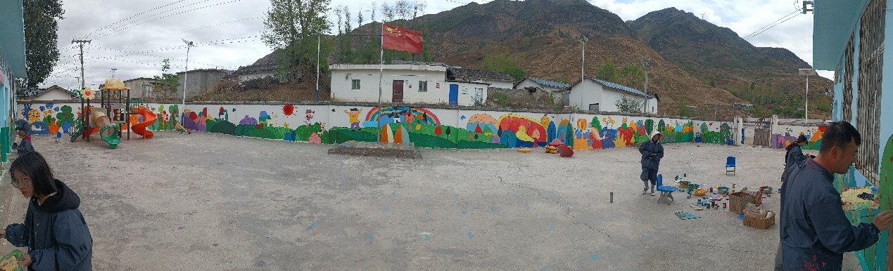 为持续将乡村振兴帮扶工作走深走实,深入乡村振兴工作第一线,学校乡村振兴帮扶办与学前教育系党支部于2023年4月初,携手助力乡村振兴,组成“送‘美’下乡”队伍,开展了“送‘美’下乡,以美化育”主题墙绘志愿服务活动,为普格县西洛镇洛莫村开展环境亮化工程。