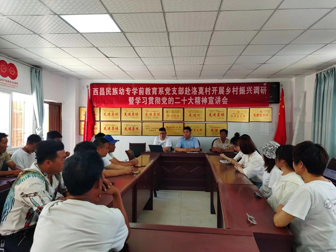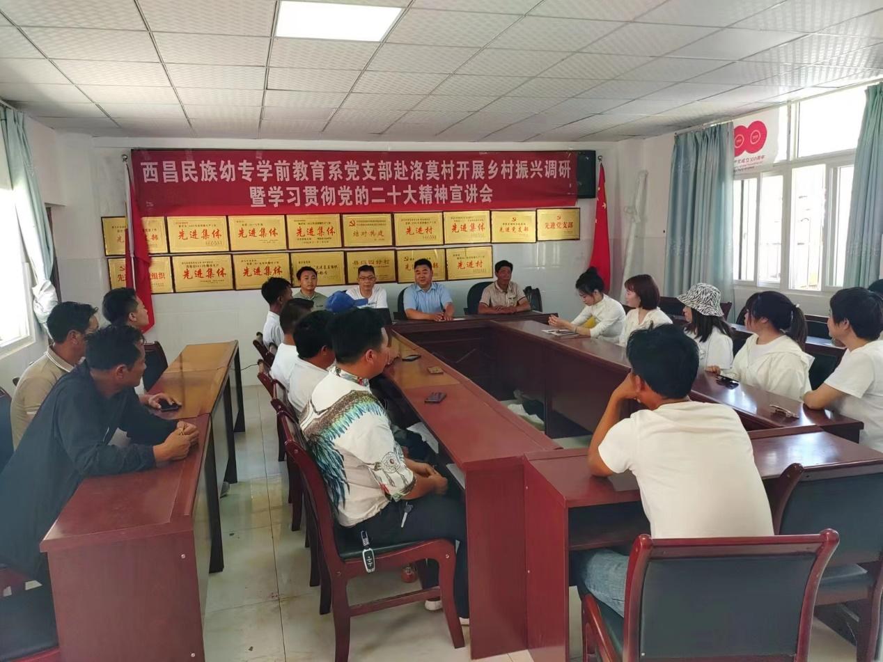 为深入学习贯彻习近平新时代中国特色社会主义思想和党的二十大精神,进一步推进支部结对共建工作,5月29日,学前教育系主任余成红、学前教育系党支部书记魏衍辉一行赴普格县洛莫村开展乡村振兴调研暨学习贯彻党的二十大精神宣讲会。