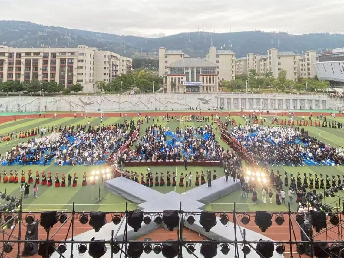 为了展示校园文化,践行民族教育。西昌民族幼儿师范高等专科学校于2025年11月13日上午9:00,在学校操场隆重举行第六届校园文化艺术节开幕式。全校师生齐聚一堂,共同见证这场融合民族特色与师范风采的文化盛典启幕,现场气氛热烈,充分展现了学校“以文化人、以美育人”的办学理念与各族学子昂扬向上的精神风貌。