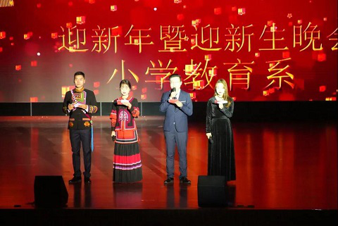 2020年12月27日,我校于雏鹰剧院正式举行“花样年华,写意青春”小学教育系迎新生暨迎新年晚会,出席本次晚会的领导有党委副书记王玉萍,系主任袁顶国,系主任安险峰。晚会由阿后尔达,陈艺心,吴倩,周进主持。据悉,本台晚会全部由小学教育系自己承办,从节目编排、主持到灯光舞美都由小学教育系教师和学生共同完成。