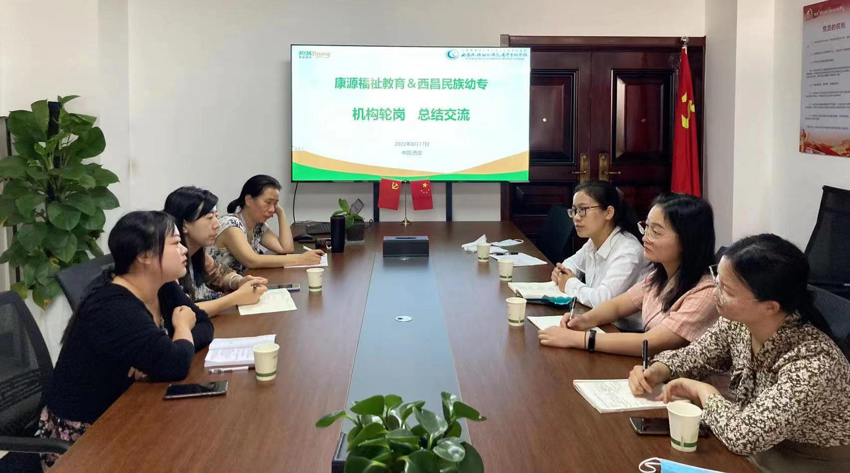 2022 年 8 月 17 日,西昌民族幼专智慧健康养老服务与管理专业教研室联合康源福祉教育部门专门组织《机构轮岗&总结交流》专题会议,就此次企校双师培养行动学习所感、所获及养老人才培