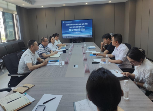 四川开元集团副总经理李涛、四川开元集团行政部部长王涛分别就四川省开元集团有限公司总体情况,德昌“海花沟”项目推进情况,针对职业教育系各专业能提供的实习和就业岗位,不同岗位的岗位职责和用人要求等与学校积极交流。结合当前开元集团正在推进的项目,提出研学旅行策划管理、研学课程实践、全龄康养项目、适老化改造等合作方向。