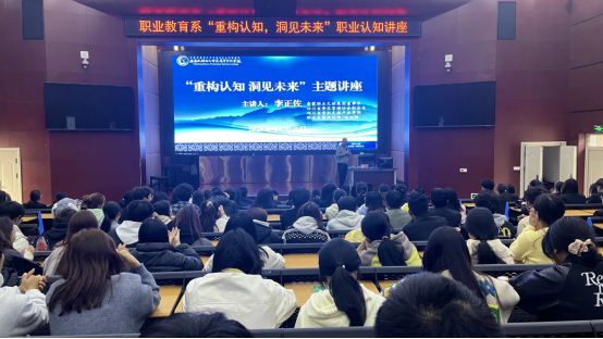 11月4日下午,职业教育系在学术报告A厅成功举办“重构认知,洞见未来”职业认知讲座。讲座特邀童蒙雅正文旅集团董事长、四川省景区管理协会副会长、四川省首批文旅产业导师李正佐先生担任主讲。职业教育系党总支副书记、副主任秦毓志主持活动,2025级旅游管理与农村电子商务专业全体学生到场聆听。