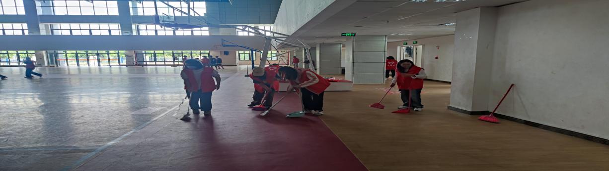 2022年6月14日我系响应学校号召,积极组织了我系的34名同学,由系团委书记吉布史呷老师牵头、副团委书记廖小坤组织了我系34名优秀的年轻志愿者对我校体育馆进行了彻底的打扫。