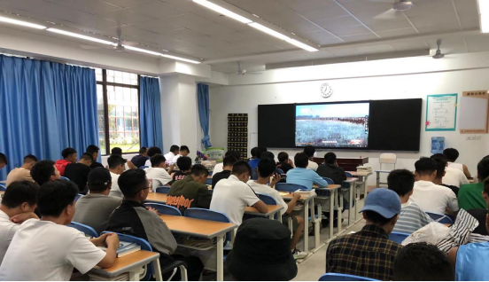 为贯彻落实中共中央、国务院、中央军委近日印发的《关于加强和改进新时代全民国防教育工作的意见》,增强全民爱党爱国爱社会主义的深厚情感、居安思危的忧患意识、崇军尚武的思想观念、强国强军的责任担当,中央广播电视总台军事节目中心联合国家全民国防教育办公室策划制作了全国首档全民国防教育日特别节目《国防公开课》。对此,职业教育系组织了在校参加州庆节目彩排的学生共67人集体观看了节目。
